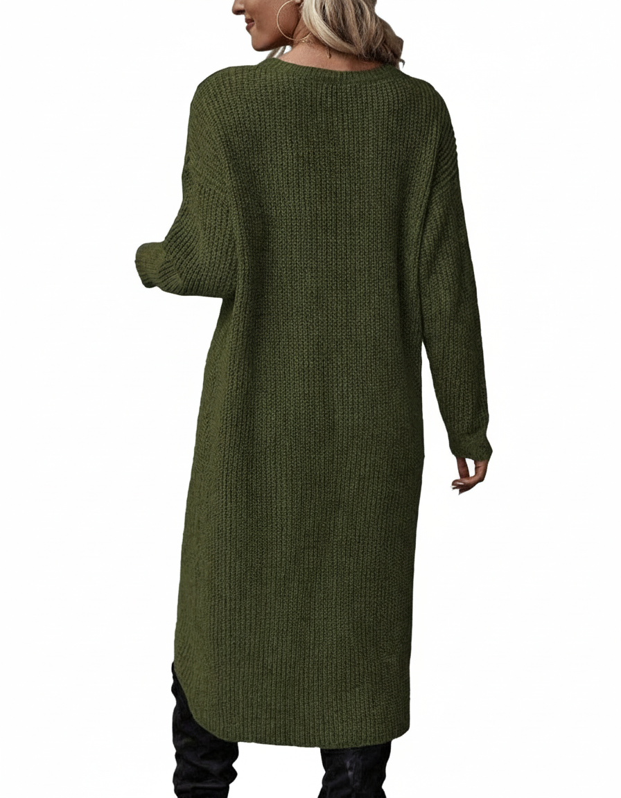 ✔ Corte largo y favorecedor: Perfecto para usar como suéter vestido o combinar con leggings o pantalones ajustados.
